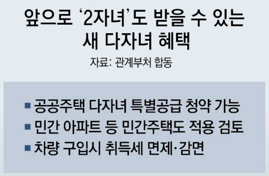 16일 교육부에서 <다자녀 가구 지원정책 개선 방향>을 발표했습니다. 현재 3자녀 이상이어야 받을 수 있었던 각종 다자녀 혜택을 2자녀까지 넓히겠다는 것입니다. 대부분의 혜택이 확대 시행되는 것은 2025년으로 예상되나, 공공분양주택 다자녀 특별공금 기준은 올해 12월, 지자체에서 시행되는 다자녀 혜택들 기준은 내년에 먼저 개정하려고 준비 중이라 좀 더 빨리 혜택을 볼 수 있을 예정입니다. 따라서 혜택을 볼 수 있는 가정이 추가적으로 많이 늘어날 것으로 보여 현재 시행되고 있는 다자녀 혜택들을 정리해 보겠습니다.