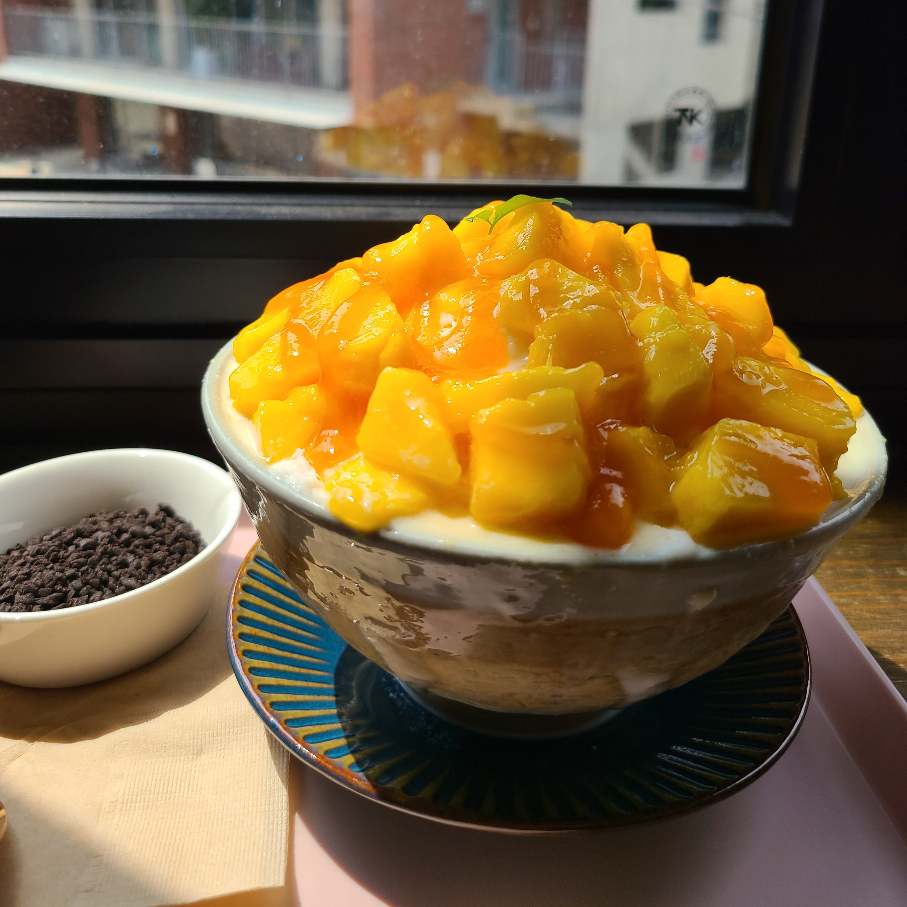 무더운 날 시원한 에어컨 아래서 먹는 달콤한 망고빙수