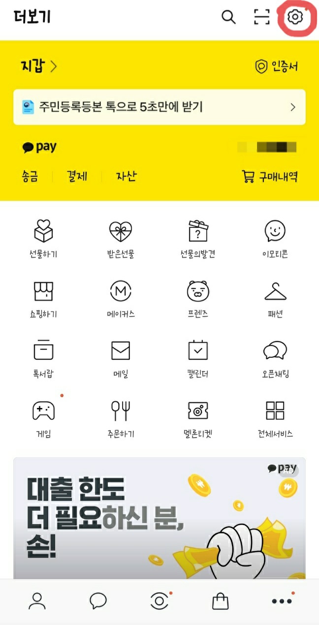 카카오톡 설정 버튼 - 개인/보안 - 내 결제 - 현금영수증 발행정보 관리 - 등록하기