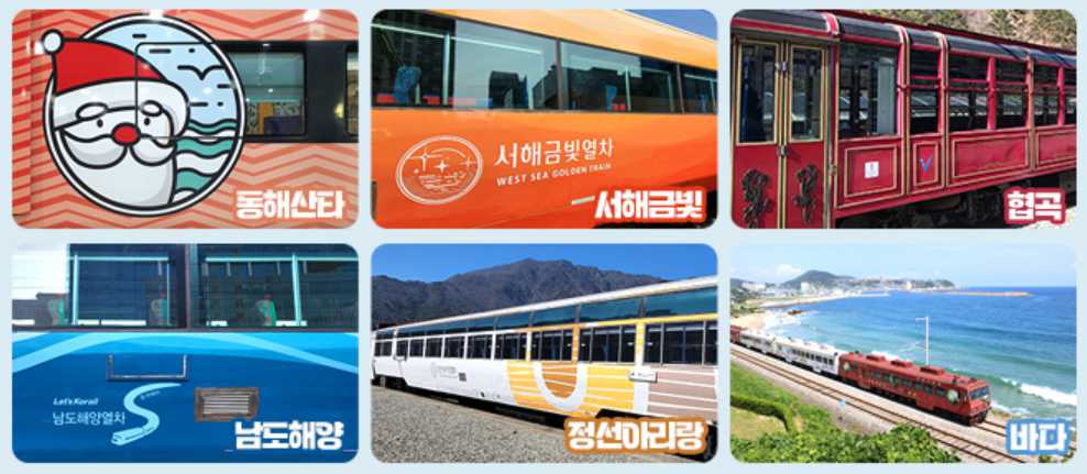 2. 관광열차 최대 50% 할인 : 동해산타, 서해금빛, 협곡, 남도해양, 정선아리랑, 바다열차